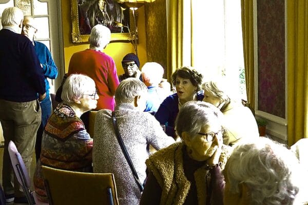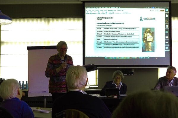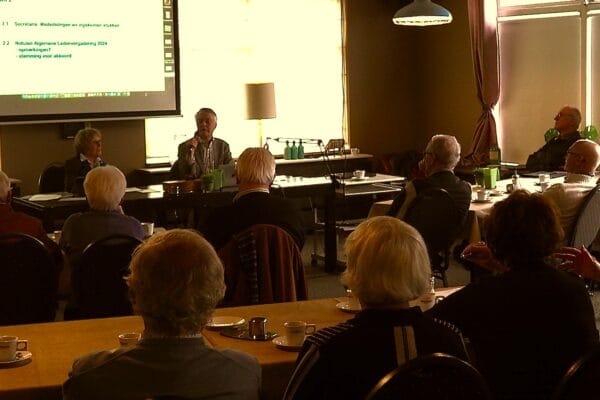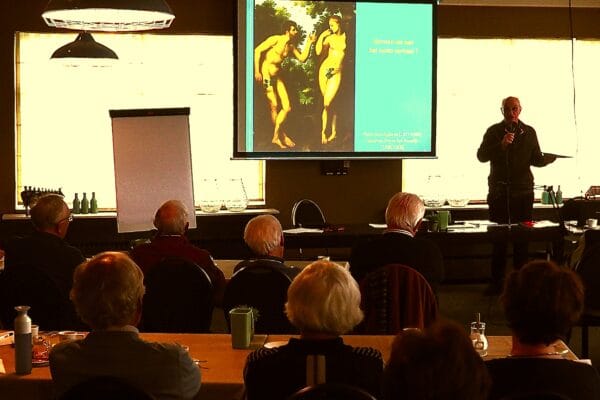 Johan Hendriks tijdens zijn lezing over de verdrijving van Adam en Eva